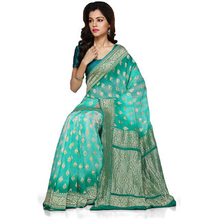 Utsav Fashion Shaded Teal Green Pure Banarasi Georgette Saree with Blouse SHR230